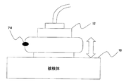 - 1 ultrasonic diagnostic device 10 subject, 12 ultrasonic probe, 18 phasing addition unit, 20 tomographic image configuration unit, 28 RF frame data selection unit, 30 displacement measurement unit, 32 elastic information calculation unit, 34 elastic image Composition part, 42 interface part, 48 position information sensor, 50 coordinate calculation part, 51 tissue displacement detection part, 52 mark creation part, 54 biological simulated image composition part, 56 memory, 65, 66 tracking points, 67 displacement measurement value, 70, 71 RF signal frame data, 73 pressure measurement value, 74 tissue displacement detection switch, 85 living body simulated image, 86 elastic image acquisition mark, 87 pressure state display, 101 elastic mark, 102 elastic scale bar, 150 compression mark, 160 Blood flow mark, 161 blood flow scale bar