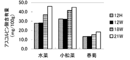 - the nitrate ion content was only slightly decreased from the 12 H (control group) with the same day length, but the day length In the 15 W group for 15 hours, a clear decrease of about 50 mg / 100 g was observed as compared with the control group, and in the 18 W group for 18 hours of day length, there was a large decrease of about 90 mg / 100 g compared to the control group. Further, in the 21 W group of 21 hours of day length and the 24 W group of 24 hours, a further remarkable decrease of about 130 to 135 mg / 100 g was observed.