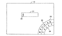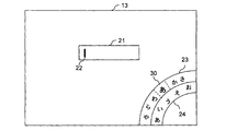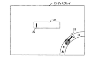 - a string of representative characters in the display range on the display 13 For example, as shown in FIG. 4A, in a character input state where the cursor 22 is in the character input area 21, a part (display range) of the representative character string 23 is displayed on the arc that intersects the lower and right sides at the lower right of the display 13.