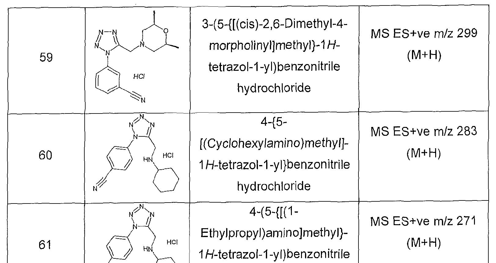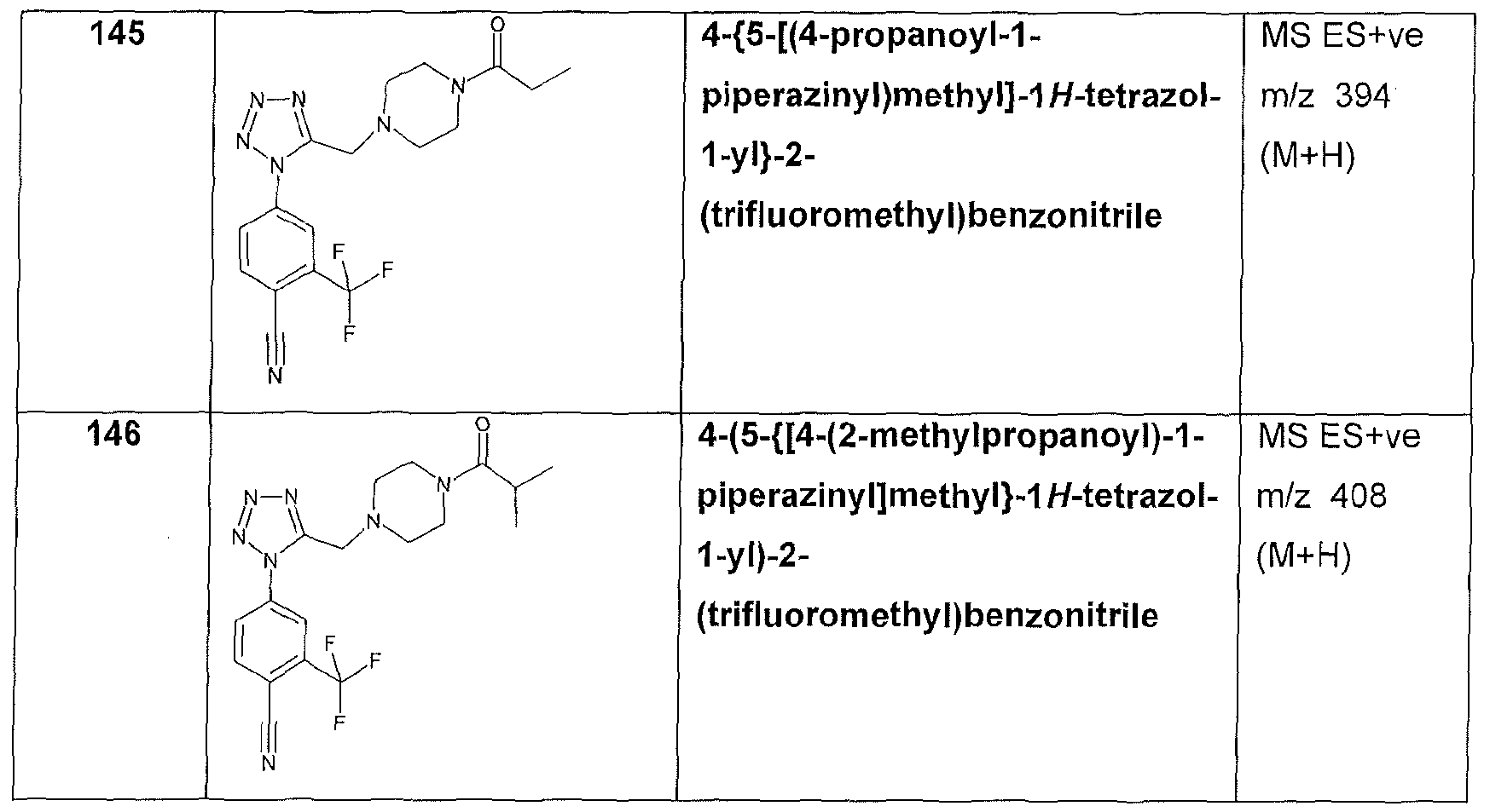 with the proviso that the compound is not 4-{[1 -(4-chlorophenyl)-1 /-/-tetrazol~5- yl]methyl}morpholine, 4-({1-[3-(trifluoromethyl)phenyl]-1 H-tetrazol-5- yl}methyl)morpholine hydrochloride, 4-({1-[3-(trifluoromethyl)phenyl]-1 /-/-tetrazol-5- yl}methyl)morpholine, 4-{[1-(3,4-dichlorophenyl)-1 H-tetrazol-5-yl]methyl}morpholine, 1 -{[1 -(4-chlorophenyl)-1 /-/-tetrazol-5-yl]methyl}-4-(methylsulfonyl)piperazine, 1-{[1 -(4- chlorophenyl)-1 H-tetrazol-5-yl]methyl}-4-(propylsulfonyl)piperazine; 1 -{[1-(3,4- dichlorophenyl)-1/-/-tetrazol-5-yl]methyl}piperidine; 4-{[1 -(4-chlorophenyl)-1 /-/-tetrazol- 5-yl]methyl}morpholine; 1 -{[1 ~(4-chlorophenyl)-1 H-tetrazol-5-yl]methyl}-4- methylpiperidine; 1 -{[1 -(4-chlorophenyl)-1 H-tetrazol-5-yl]methyl}piperidine; 1 -{[1 -(4- chlorophenyl)-1 /-/-tetrazol-5-yl]methyl}-4-(ethylsulfonyl)piperazine; 1 -{[1-(4- chlorophenyl)-1W-tetrazol-5-yl]methyl}-2-methylpiperidine, 1-{[1-(4-chlorophenyl)-1H- tetrazol-5-yl]methyl}piperazine; 1 -(4-chlorophenyl)-5-(1 -pyrrolidinylmethyl)-1 /-/- tetrazole; 1-{[1 -(4-chlorophenyl)-1 -/-tetrazol-5-yl]methyl}-4-methylpiperazine or 1-{[1 - (4-chlorophenyl)-1 /-/-tetrazol-5-yl]methyl}hexahydro-1 /-/-azepine.