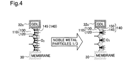 - Fig. 4 is a close-up view schematically illustrating the surface of the catalyst particles in the cathode catalyst layer