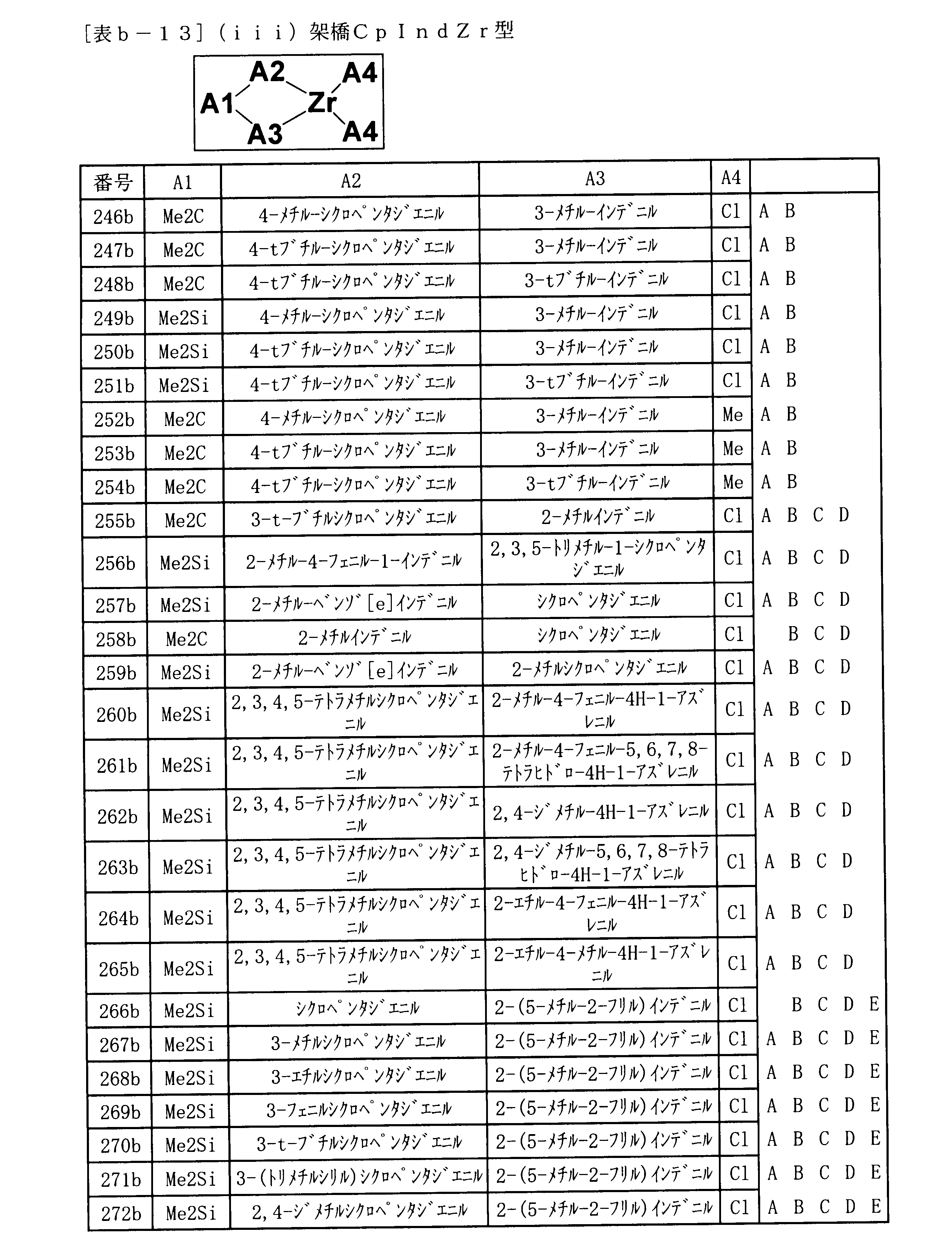 - a method for introducing a long chain branch by a metallocene complex other than the above a method for producing polyethylene containing a long chain branch using a bridged metallocene catalyst having a specific structure (for example, see Patent Document 15) is known.