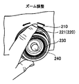 - DESCRIPTION OF SYMBOLS 100 Stereoscopic image pick-up device, 110 ... Main-body part, 113 ... Display part, 115 ... Operation part, 120 ... Lens part, 121L ... Left lens optical system, 121R ... Right lens optical system, 123 ... Lens filter, 125 ... Lens hood , 200 ... adjustment ring, 210 ... zoom ring, 220 ... focus ring, 230 ... convergence ring, 240 ... setting button, 311 ... focus position sensor, 312 ... control circuit