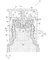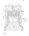 - An intermediate tube portion 27 extending downward from the flange portion 25 so as to surround the inner tube portion 24 from the outside in the radial direction and fitted in the mouth portion 13a of the container body 13 in a liquid-tight manner. (Refer to FIG. 2 etc.).