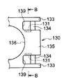 - An example of the engaging portion of the present invention is an inner surface of the outer ladder portion 133, in other words, a portion between the rotating pin 134 and the bottom surface of the notch portion 139 on the outer side wall surface of the notch portion 139.