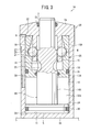 - the disk portion 24 is inserted into the inner peripheral surface 10 of the housing 3 through the lower sealing member 26 so as to be able to move in a tight manner.
