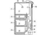 - the blower fan 35 circulates the air cooled by the cooler 34 from the air passage to the refrigerator compartment 11 and the storage compartments 12 to 15.