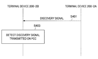 - the other terminal device conducting D2D communication may be unable to determine which component carrier the above discovery signal is transmitted on, and whether or not the discovery signal is receivable. For this reason, the other terminal device may, for example, conduct a detection process for detecting the discovery signal on the signals transmitted on all component carriers. As a result, the load on that other terminal device may increase.