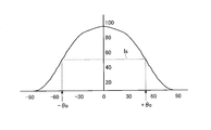 - FIG. 18 is an explanatory diagram showing an example of the light distribution of the light source obtained by converting the circular graph of FIG. 17 into an orthogonal coordinate between the angle and the light intensity.
