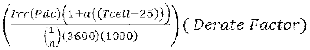 - ⁇ Dynamic Derate Factor described by one or more polynomial equation(s) derived from the operating efficiency of a reference inverter and other system characteristics relative to irradiance conditions.
