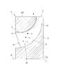 - the axial thickness dimension of the disk 2 decreases from one of the axial end faces (upstream side) from the radially inner position S slightly spaced from the axis O toward the radially outer side.