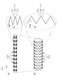 - the wavy pattern is formed by connecting a plurality of substantially V-shaped elements in which two legs are connected at the top, with the tops being alternately reversed in the axial direction.