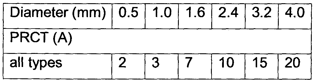 - a number of standard electrode sizes are used ranging from 0.020" to 5/32" with the 1/16" and 3/32" being the most commonly used electrode diameters.