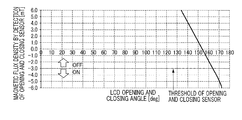 - Patent Literature 1 a device that uses the magnetic sensor for detecting each of the opening and closing and the rotation and then switching a display state of the display unit is disclosed.