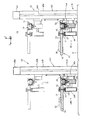 - the first and third guide rails 21 and 121 are provided so as to be arranged on the second and fourth support plates 22b and 122b via brackets 21a and 121a fixed on the gantry 9, respectively.