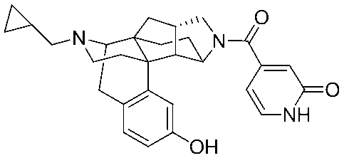 - CVFMXSHQJATXNN-JBRORITQSA-N CN(C=CC(C(N(C[C@H]1CC23CC4)C4C1C2(CC1)c2cc(O)ccc2CC3N1C1CCC1)=O)=C1)C1=O Chemical compound CN(C=CC(C(N(C[C@H]1CC23CC4)C4C1C2(CC1)c2cc(O)ccc2CC3N1C1CCC1)=O)=C1)C1=O CVFMXSHQJATXNN-JBRORITQSA-N 0.000 description 1