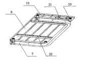 - the lower side of the table top 8 is respectively provided with a guide rail 19, and the table top support tube 7 is fixedly connected with the sliding sleeve 21 mounted on the guide rail 19, and linearly moves along the guide rail 19.