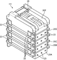 - These housing elements 20A to 20E are stacked in a direction perpendicular to the connector fitting direction (in this embodiment, the vertical direction; hereinafter referred to as “connector longitudinal direction” for convenience in this embodiment) and mutually.