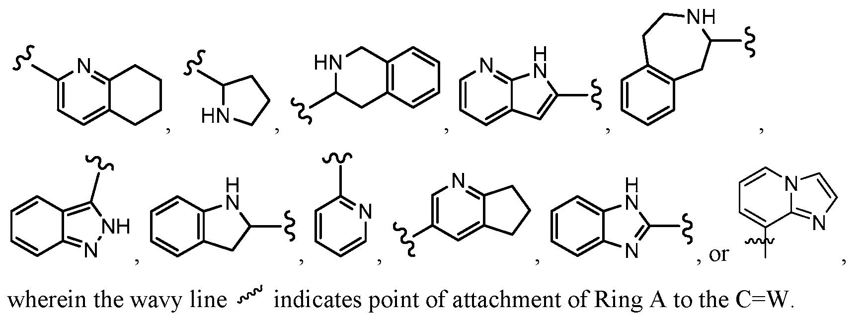 Provided that 1) when R1 is adjacent to the C=W attached to Ring A, R1 does not contain a ring moiety, 2) at least one R1 is adjacent to the C=W attached to Ring A, and at least one R1 is C1-C6 alkyl or C1-C6 fluoroalkyl, C6-C10 aryl; C3-C10 heteroaryl or C3- C10 heterocyclic ring wherein anywhere from 1 to 4 ring atoms are independently O, S,