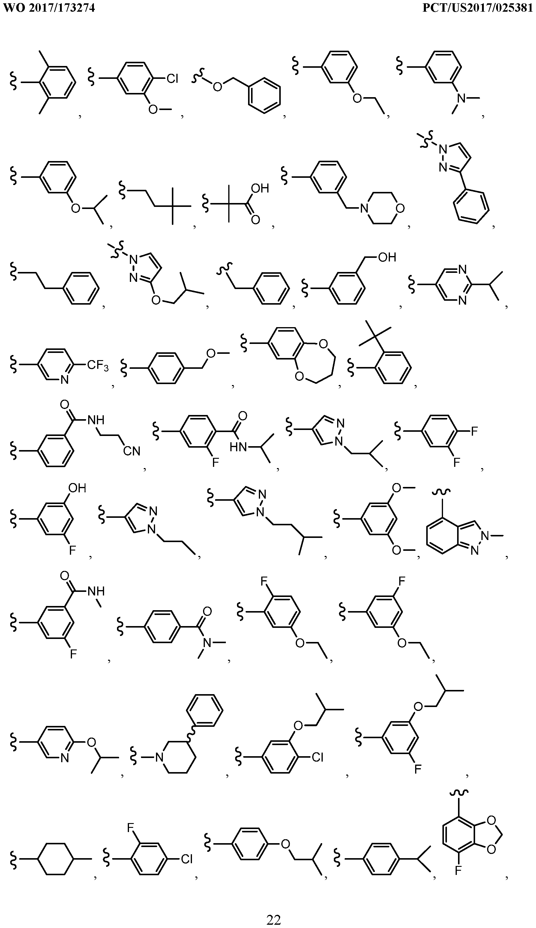 [0041] In general, the term“substituted,” whether preceded by the term“optionally” or not, refers to the replacement of hydrogen radicals in a given structure with the radical of a specified substituent. Specific substituents are described above in the definitions and below in the description of compounds and examples thereof. Unless otherwise indicated, an optionally substituted group can have a substituent at each substitutable position of the group, and when more than one position in any given structure can be substituted with more than one substituent selected from a specified group, the substituent can be either the same or different at every position. As one of ordinary skill in the art will recognize, combinations of substituents envisioned by this disclosure are those combinations that result in the formation of stable or chemically feasible compounds.