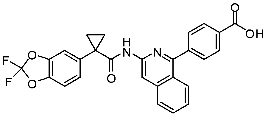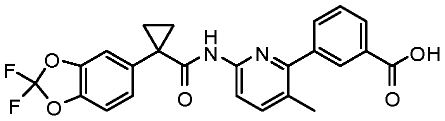 [001408] To identify potentiators of F508del, a double-addition HTS assay format was developed. During the first addition, a Cl--free medium with or without test compound was added to each well. After 22 sec, a second addition of Cl--free medium containing 2 - 10 ^M forskolin was added to activate F508del. The extracellular Cl- concentration following both additions was 28 mM, which promoted Cl- efflux in response to F508del activation and the resulting membrane depolarization was optically monitored using the FRET-based voltage-sensor dyes.