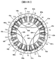 - the windings wound around each of the teeth are U1a, V1a, V2b, W1b, U2b, U3a, V3a, W2a, W3b, U4b, V4b, V5a, W4a, U5a, U6b, V6b, W5b, W6a, respectively. It distinguishes by attaching a symbol.