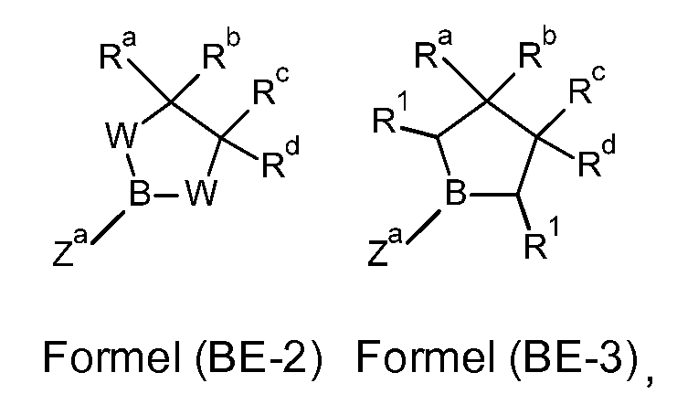 Reaktive, ligandhaltige Komponenten sind Bestandteile, die bei den Reaktionsbedingen mit der eingesetzten Borverbindung reagieren können, so dass weder die eingesetzten Borverbindungen noch unter Umständen verwendete Katalysatoren hiervon umfasst sind.