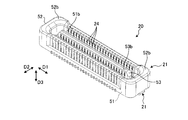- the number of contacts is determined in the contact arrangement direction in which the plurality of contacts are arranged, and thus there is a limitation in reducing the dimensions. Therefore, it is conceivable to reduce the size in the width direction orthogonal to the contact arrangement direction. On the other hand, if the dimension in the width direction is reduced, the strength is reduced. For this reason, for example, when removing the second connector from the first connector or when an unintended force is applied, the fixed insulator or the like may be damaged.