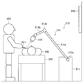 - the endoscope 101 is supported by the arm part 131, and its position and posture are controlled. Thereby, the stable position fixing of the endoscope 101 can be realized.