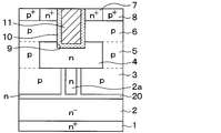 - a reduction in on-resistance value is necessary to reduce switching loss, but the value of a current flowing through a semiconductor element when a load is short-circuited increases in inverse proportion to the on-resistance value of the semiconductor element. That is, the smaller the on-resistance value, the larger the saturation current when the load is short-circuited. As a result, the semiconductor element is easily damaged by self-heating, so that the tolerance of the SiC semiconductor device when the load is short-circuited is lowered. For this reason, there is a trade-off relationship between reducing the on-resistance value and improving the withstand capability of the SiC semiconductor device when the load is short-circuited. However, this trade-off relationship is improved, that is, both the low on-resistance value and the low saturation current are compatible. Is desired.