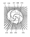 - FIG. 16B is a perspective view seen from the downstream side in the case where the guard mark has a conical protrusion and a straightening vane.
