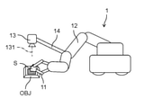 - the camera 13 takes an image of an object to be imaged in the direction of the optical axis 131.