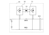 - the DCDC converter 22 is mounted on an on-board charger 500 separate from the battery pack 20 and the drive unit 10, and the AC terminals Tac1 to Tac3 are connected to the primary circuit 31 of the DCDC converter 22 via the PFC circuit 212 and reactors 211a to 211c. Note that the noise reduction circuit 300 in FIG. 13 does not need to be provided.