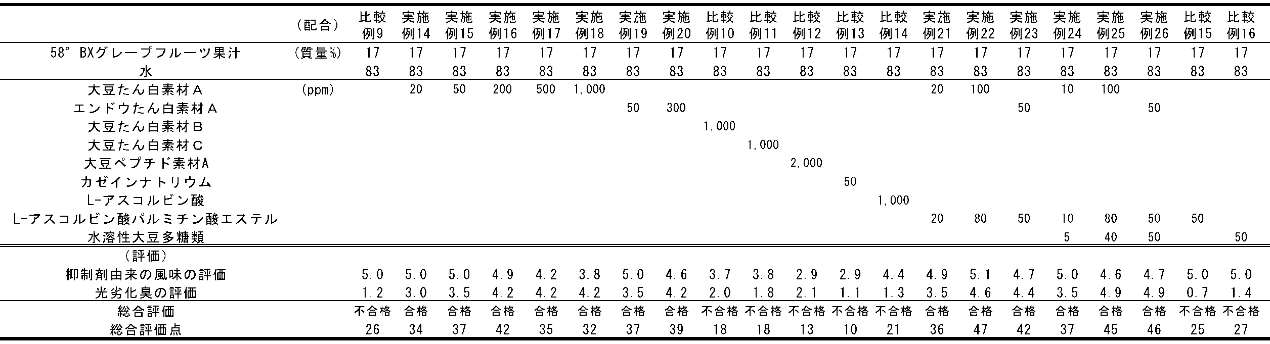 - Patent Document 4 proposes a method for suppressing light deterioration odor in soft fruit juice-containing beverages by incorporating peptides.