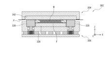 第3準備工程の後に、封止樹脂R及びワークWを封止金型(第3金型302)内にセットするセット工程を実施する。図18に示すように、それぞれのキャリアCが外側となるように配置した二つの封止樹脂Rの間にワークWを挟んだ状態で第3キャビティ308内(第3キャビティ駒326上)に保持(載置を含む)する。 After the third preparation step, a setting step is carried out in which the sealing resin R and the workpiece W are set in the sealing mold (third mold 302). As shown in FIG. 18, the workpiece W is sandwiched between two sealing resins R arranged so that each carrier C is on the outside, and is held (including placed) in the third cavity 308 (on the third cavity piece 326).